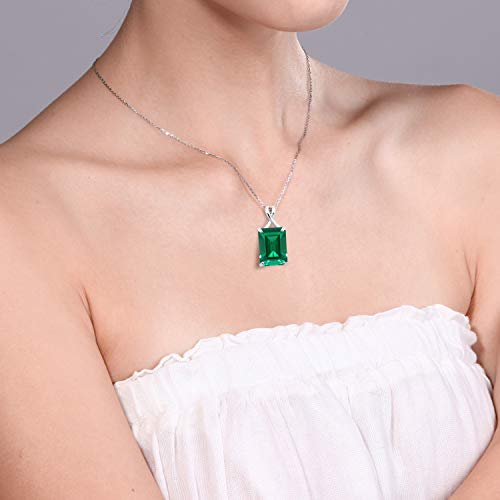 More information about Gem Stone King 10K White Gold 14X10MM Emerald Cut Gemstone Birthstone Pendant Necklace | Gold Necklace For Women | With 18 Inch 10K White Gold Chain