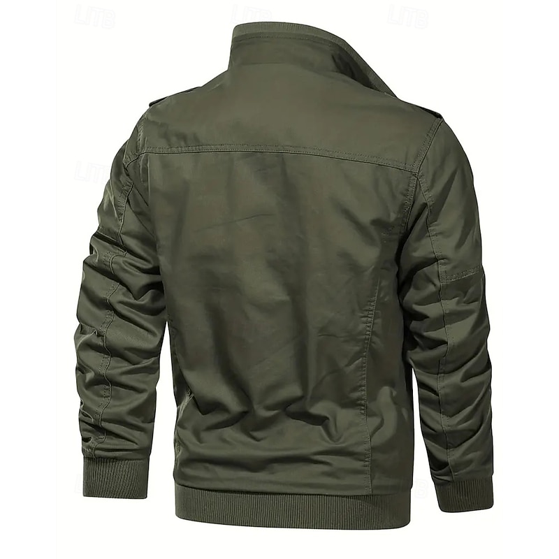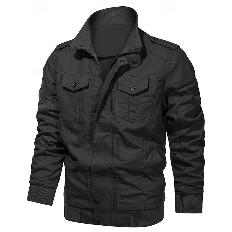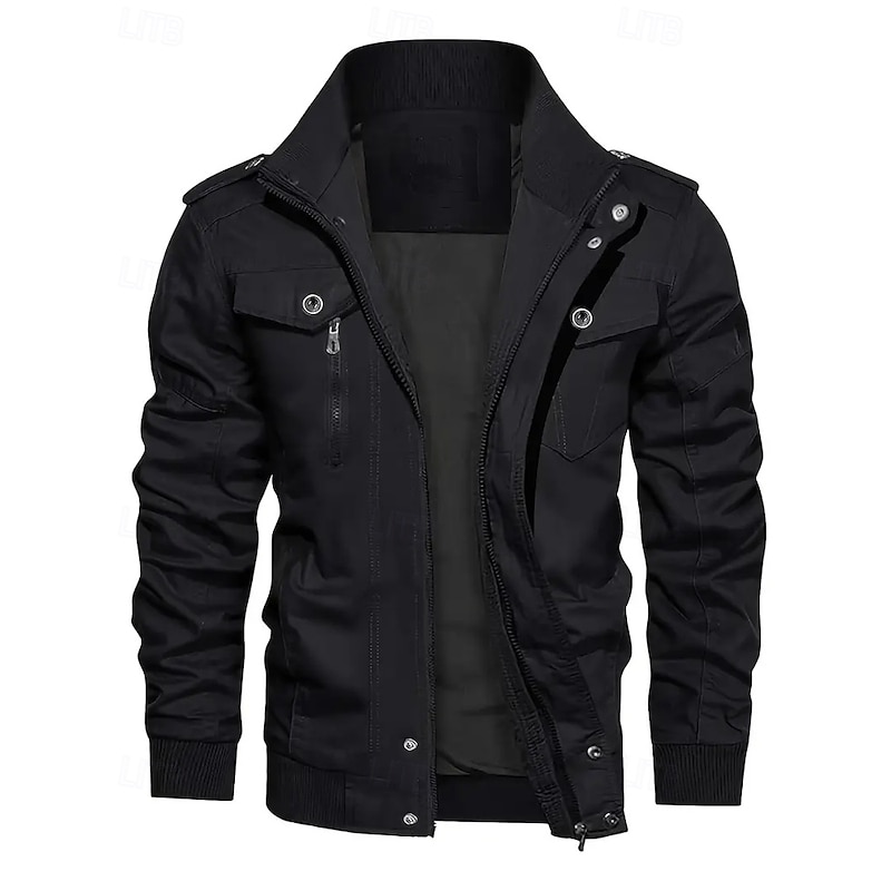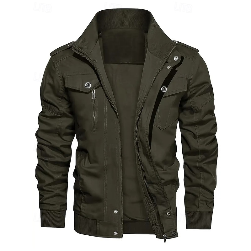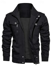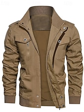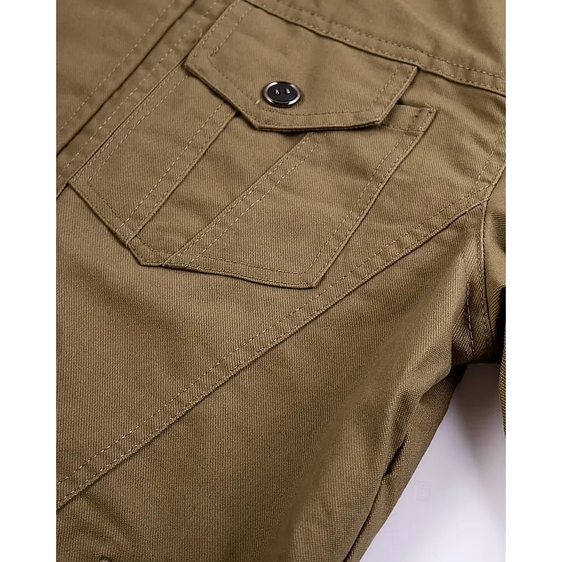 More information about Men's Utility Jacket Cargo Jacket Vacation Daily Warm Pocket Fall Winter Plain Fashion Classic Lapel Regular Black Khaki Army Green Jacket