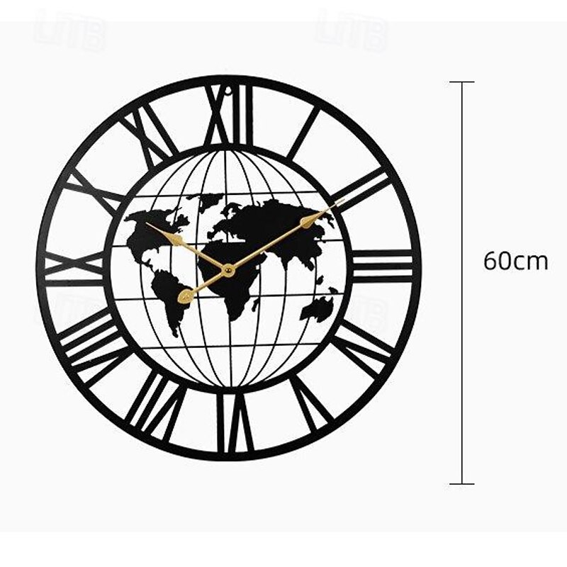 Wall Clock Iron Round Office Clock Creative Map Personality Mute Hanging Watch Nordic Living Room Clock Home Decor 60 cm 1