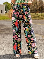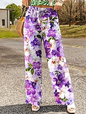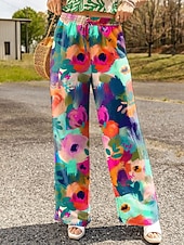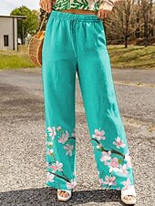 More information about Women's Wide Leg Chinos Baggy Pants Vacation Vintage Fashion Full Length High Waist Floral Graphic Printing Soft Breathable Inelastic Formal Vacation Street Black Red Purple Green Summer Spring Loose