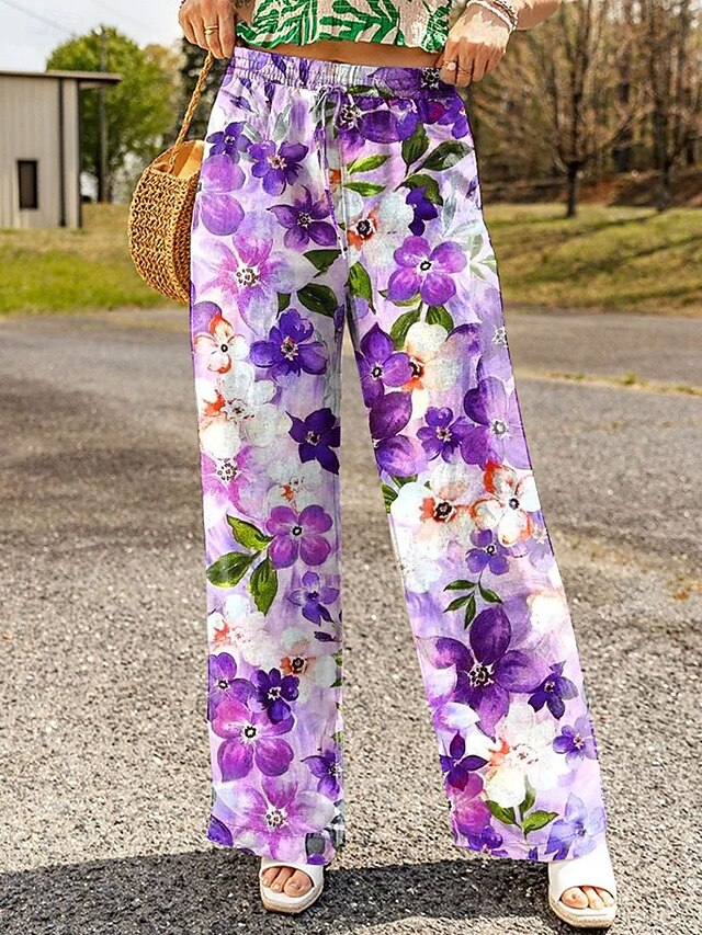 HOT ! Women's Wide Leg Chinos Baggy Pants Vacation Vintage Fashion Full Length High Waist Floral Graphic Printing Soft Breathable Inelastic Formal Vacation Street Black Red Purple Green Summer Spring Loose