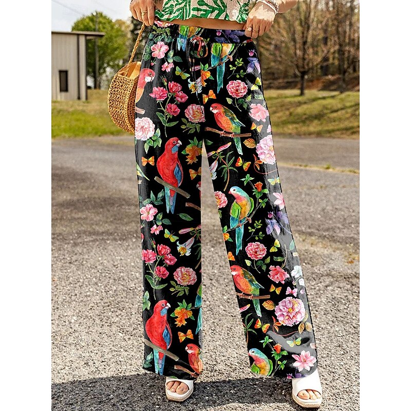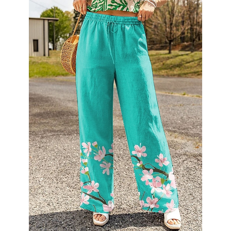 Women's Wide Leg Chinos Baggy Pants Vacation Vintage Fashion Full Length High Waist Floral Graphic Printing Soft Breathable Inelastic Formal Vacation Street Black Red Purple Green Summer Spring Loose 10