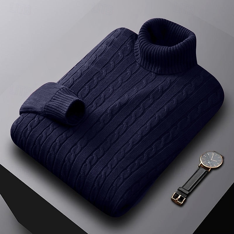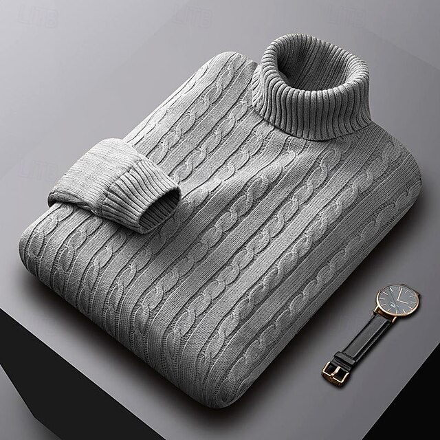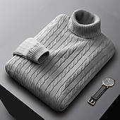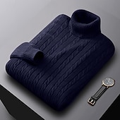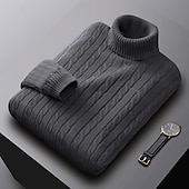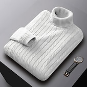 More information about Men's Sweater Pullover Sweater Jumper Ribbed Cable Knit Regular Tops Knitted Slim Fit Plain Turtleneck Knitwear Contemporary Casual Daily Wear Clothing Apparel Fall Winter Black White L XL 2XL