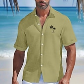 More information about Men's Coconut Palm Linen Shirt Casual Shirt Summer Hawaiian Shirt Short Sleeve Hawaiian Resort Vacation Causal Casual Summer Spring Turndown Button Up Pink Blue Green