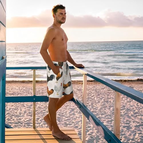 Mens Rooster Chicken Retro Swim Trunks Quick Dry Swim Beach Shorts with Mesh Lining Pockets Large 7