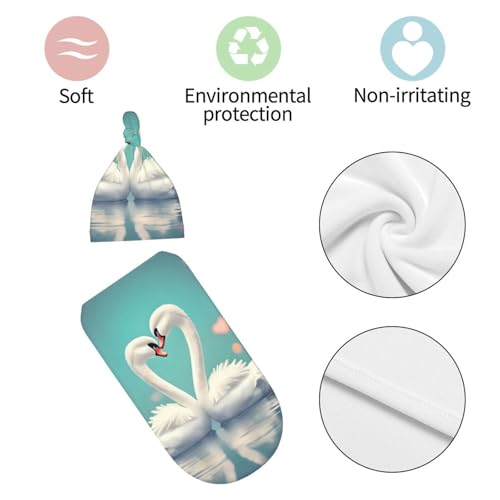 The swan in Love Print Newborn Swaddle Blanket with Beanie Set, Soft Baby Sleep Sack Receiving Wraps, for Boy Girl 2