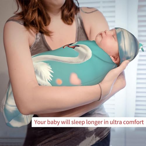 The swan in Love Print Newborn Swaddle Blanket with Beanie Set, Soft Baby Sleep Sack Receiving Wraps, for Boy Girl 6