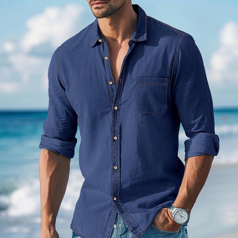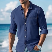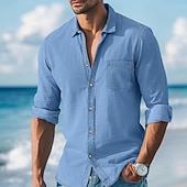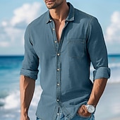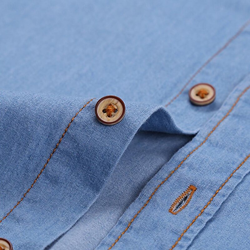More information about Men's Shirt Chambray Shirt Calico Shirt Button Up Shirt Casual Shirt Cowboy Shirt grey blue Black Dark Blue Light Blue Long Sleeve Solid Color Lapel Daily Vacation Denim Clothing Apparel Fashion