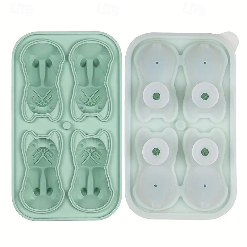 1pc Ice Cube Mold 2.4''/2.8'' Large 4 Cubes, French Bulldog,Cat, Ice Cube Tray with Lid, Fun and Cute Gifts for Whiskey, Cocktails and Bourbon with Easy Release 4