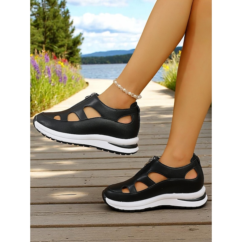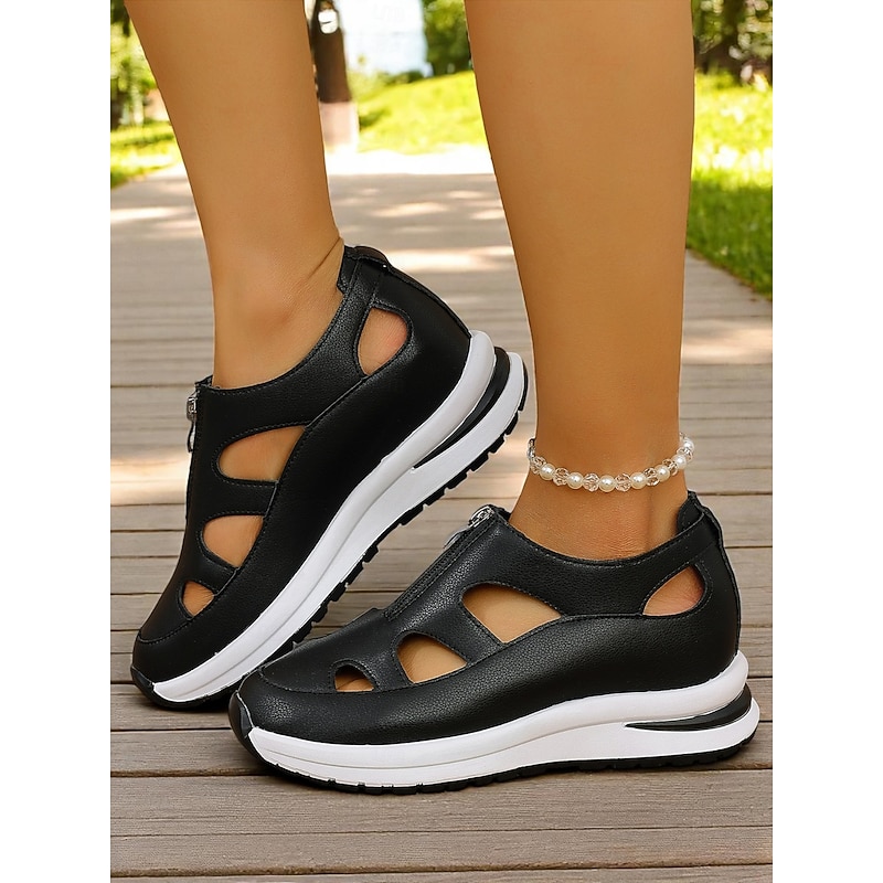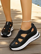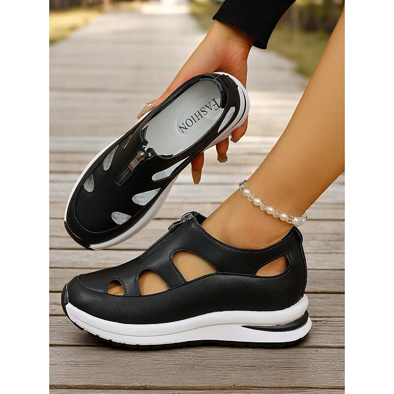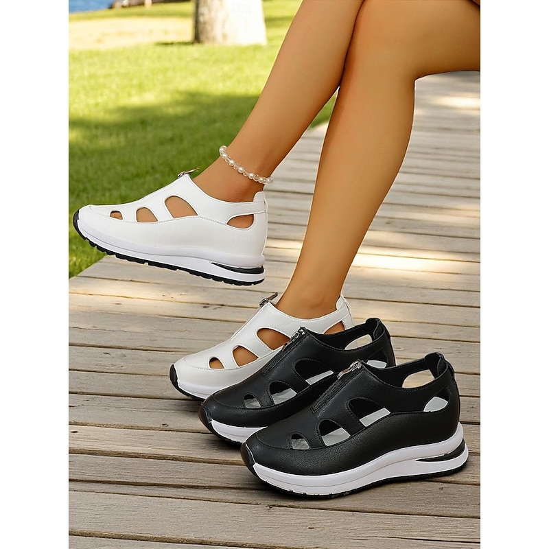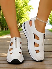 HOT ! Women's White Sport Sandals with Cutout Design, Zip-Up Lightweight Shoes for Comfort Walks, Active Travel and Daily Errands