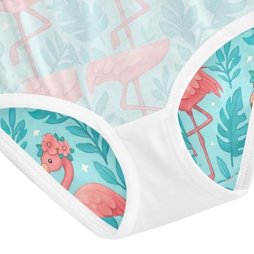 Joisal Cute Pink Flamingos Blue Leaves Panties for Girl Toddler Underwear Floral Cotton Fun Print Briefs Undies Kids 2t 4