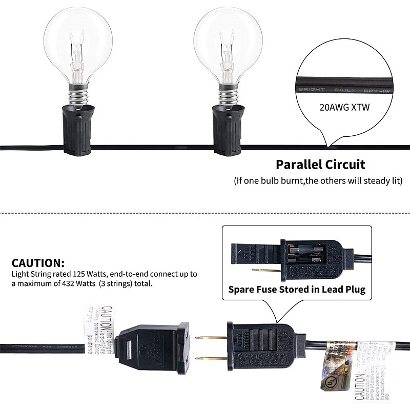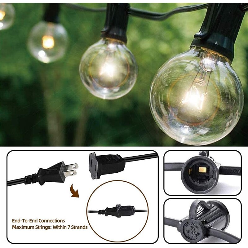 $60.99 - Globe String Lights 15m/50FT 50LEDs G40 Outdoor Hanging Globe Patio Lights with 50 Clear Bulbs(2 Spare) UL Listed Connectable Backyard Lights for Indoor Outdoor Decor 50 Hanging Sockets E12 Base 5W Bulb Black 2025. Shop for cheap Plug String Lights online? Buy at lightinthebox.com on sale today!