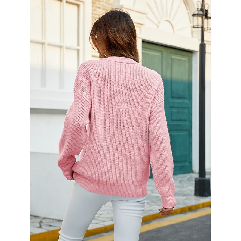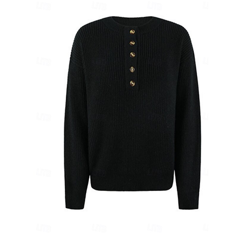 More information about Women's Sweater Casual Soft Pure Color Ribbed Crew Neck Buttons Knitted Long Sleeve Regular Tops Knit Outdoor Daily Weekend Black Pink Fall Winter