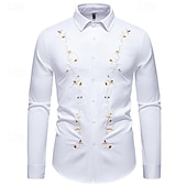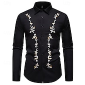 More information about Men's Shirt Summer Shirt Casual Shirt Beach Shirt Button Up Shirt Black White Long Sleeve Floral Lapel Vacation Hawaiian Embroidered Clothing Apparel Polyester Fashion Casual Comfortable