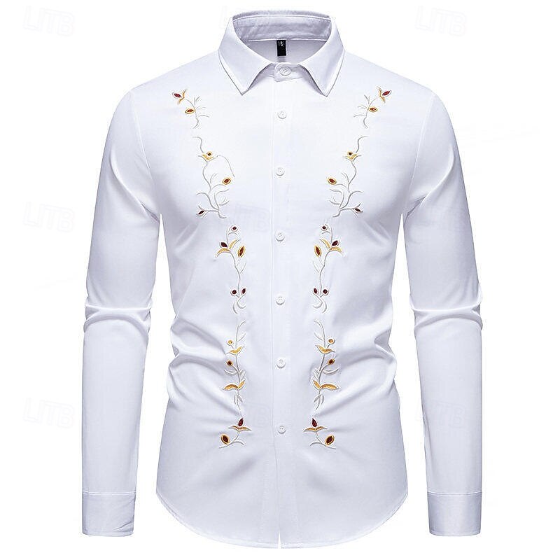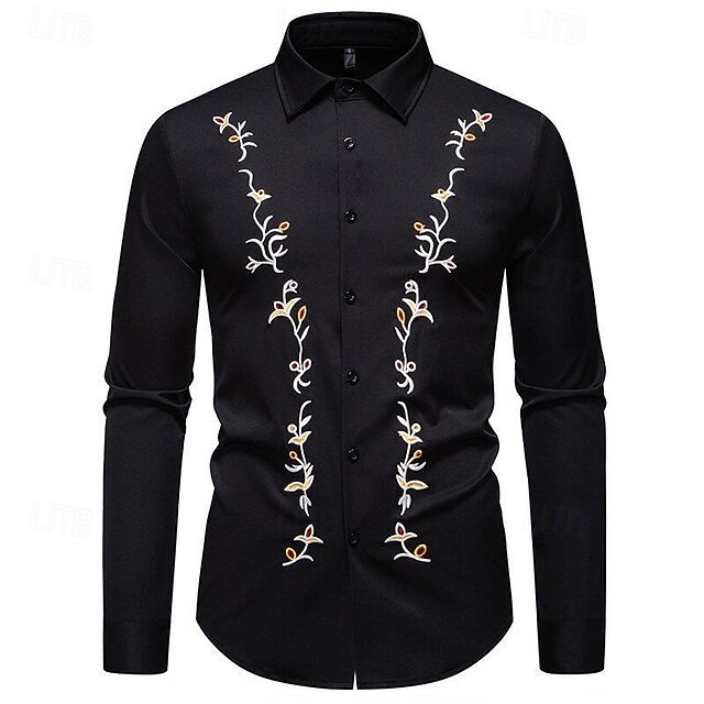 Highlights - Stay stylish and comfortable this spring with our casual men's long sleeve floral shirt. - Made with high quality polyester fabric, perfect for vacation or everyday wear. - Featuring a trendy embroidered design and classic lapel neckline. - Stand out in the crowd with this unique and fashionable piece.