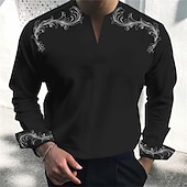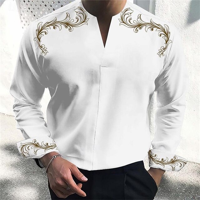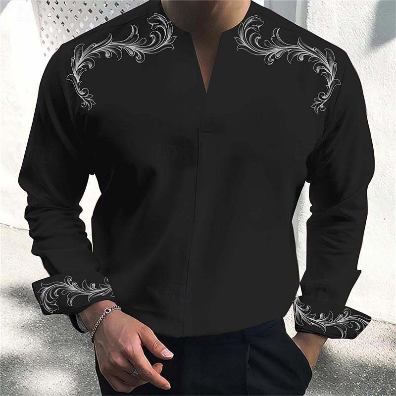 More information about Men's Shirt Dress Shirt Henley Shirt Printed Shirts Scroll Business Daily Wear Black White Pink Blue Long Sleeve V Neck Spring & Summer Clothing Apparel 3D Print