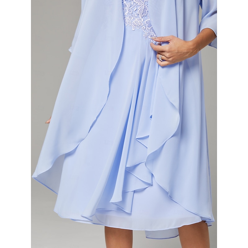 This Two Piece A-Line Mother of the Bride Dress Wedding Guest Elegant Scoop Neck Knee Length Chiffon Lace Sleeveless Jacket Dresses with Pleats Appliques combines elegant design with practical functionality. Every detail has been carefully considered to ensure you get the leading possible experience. The first-class construction means this product will serve you well for years to come.