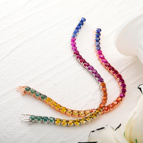 • Colorful Bracelets for Women: The rainbow tennis bracelet prong-set round cut 5 mm 5A colorful cubic zirconia which can make the stone stay more stable on the bracelet, and reducing the risk of gemstone falling and increasing the life of the bracelet