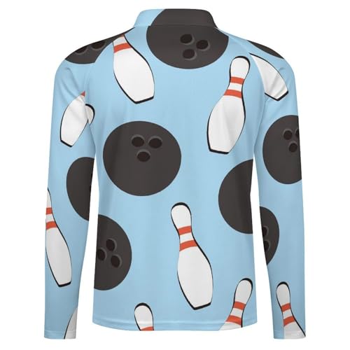 Cartoon Bowling Ball Men's Rash Guard Long Sleeves Quick Dry Fishing Workout Shirts with Zipper 3