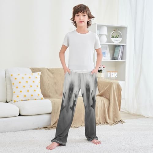 Ghostly Face with Hands Lounge Pajama Pants gentle PJ Bottoms for Sleepwear Ages 6-14 Years
