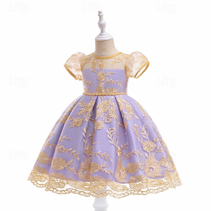 More information about Kids Girls' Dress Flower Short Sleeve Outdoor Casual Sequins Fashion Sweet Polyester Midi Casual Dress A Line Dress Tulle Dress Summer Spring 4 years+ Champagne Pink Purple
