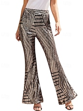 More information about Women's Wide Leg Fashion Streetwear Full Length Natural Plain Sequins Elastic Waist Comfy Outdoor Party Street Apricot Black Brown Fall Regular Fit