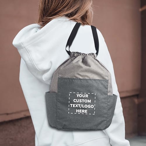 HOT ! DISCOUNT PROMOS Custom Kindling Satchel Drawstring Backpacks Set of 24, Personalized Bulk Pack - Versatile, Lightweight, Secure, Ideal for Daily Use, Gym, Travel - Grey