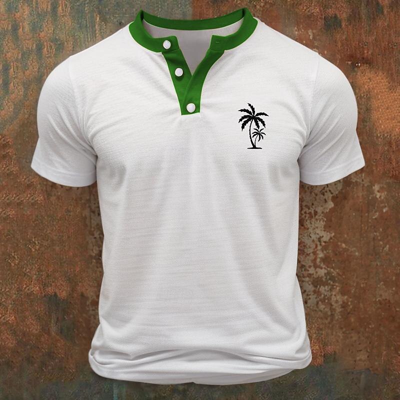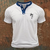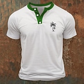 More information about Men's Button T Shirt T Shirt Henley Shirt Tee Short Sleeve Henley Spring & Summer Color Block Coconut Tree Fashion Designer Basic Patchwork Vacation Street Going out Black Red Blue Top Tee for Men