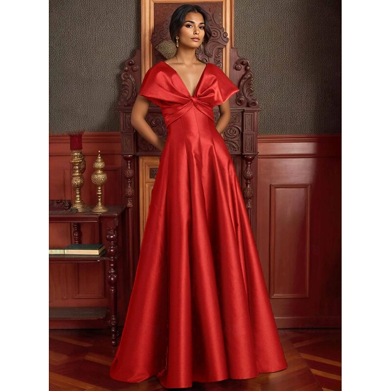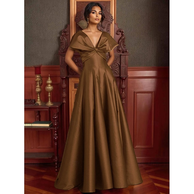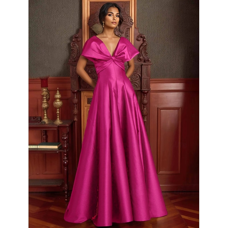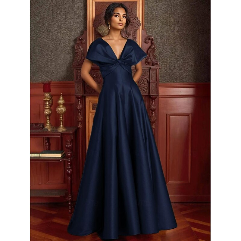 More information about A-Line Evening Gown Elegant Dress Formal Wedding Floor Length Off Shoulder V Neck Stretch Satin with Pocket