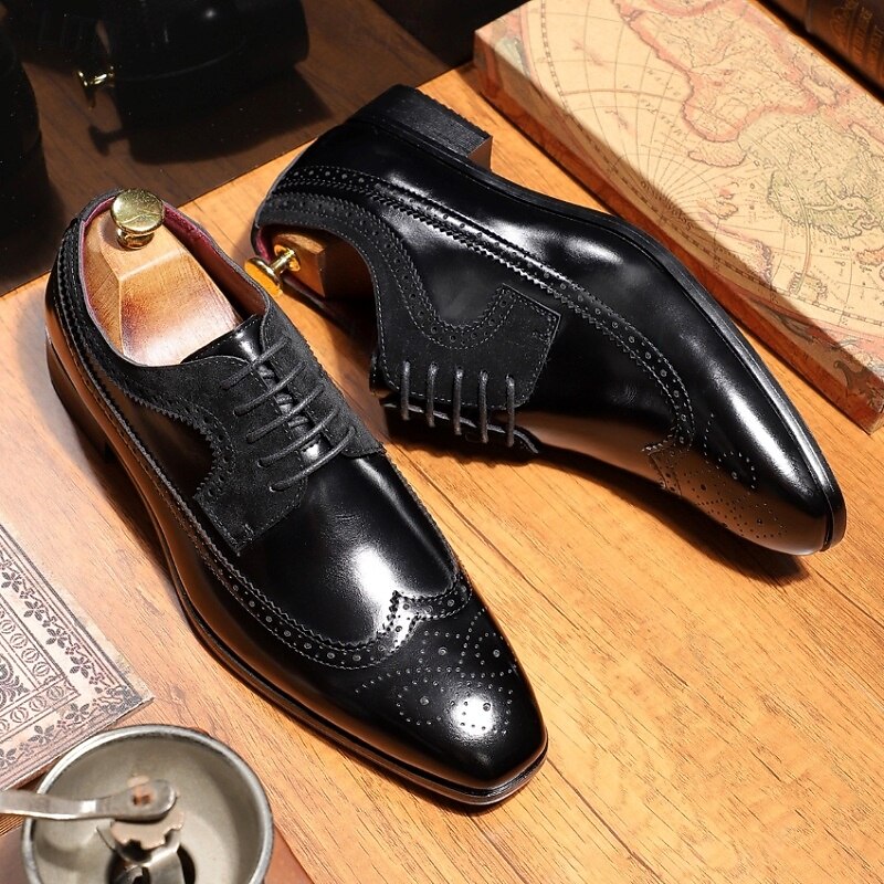 HOT ! Men's Wingtip Oxford Dress Shoes in Brown and Maroon – Classic Brogue Style for Business and Semi-Formal Events
