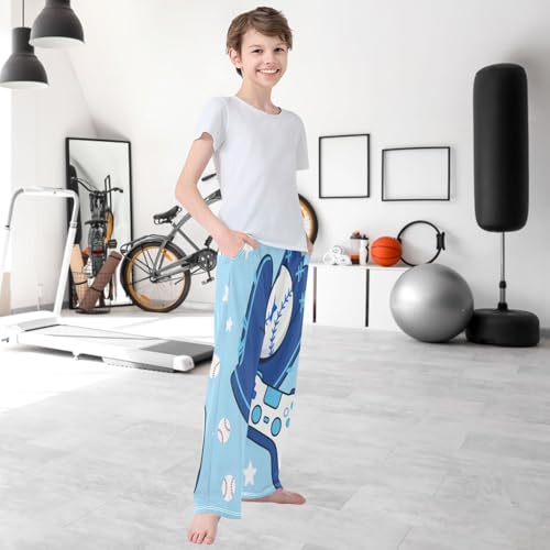 Boy's Pants Baseball and Game Jogger Pants Elastic Waist Long Bottoms Trousers with Pockets 6-14 Years 6