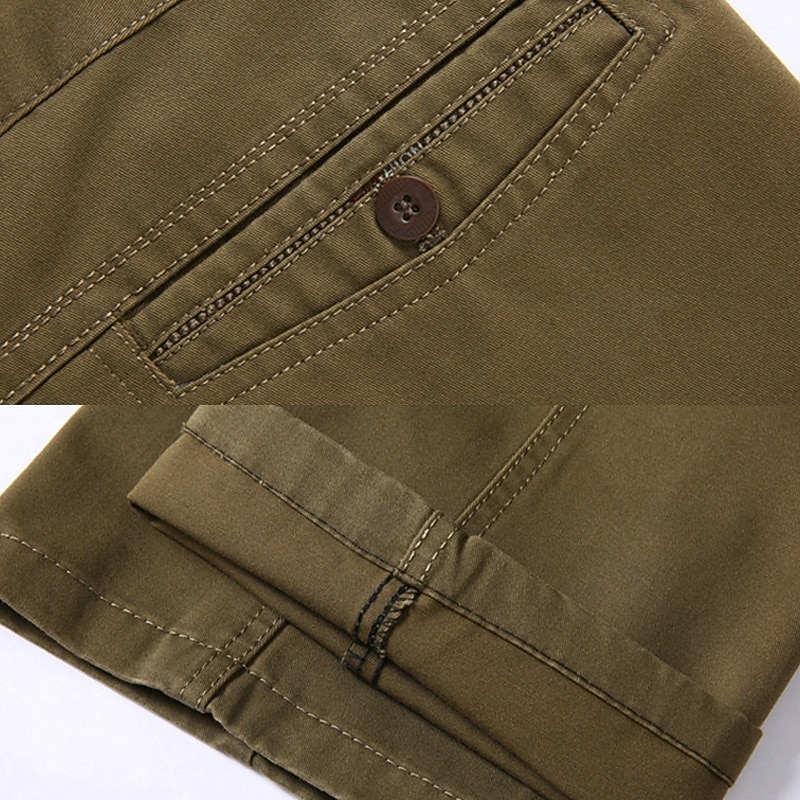 Men's Dress Pants Trousers Chinos Buttons Pocket Plain Comfort Formal Party Work Fashion Classic Style Black Brown Micro-elastic 11