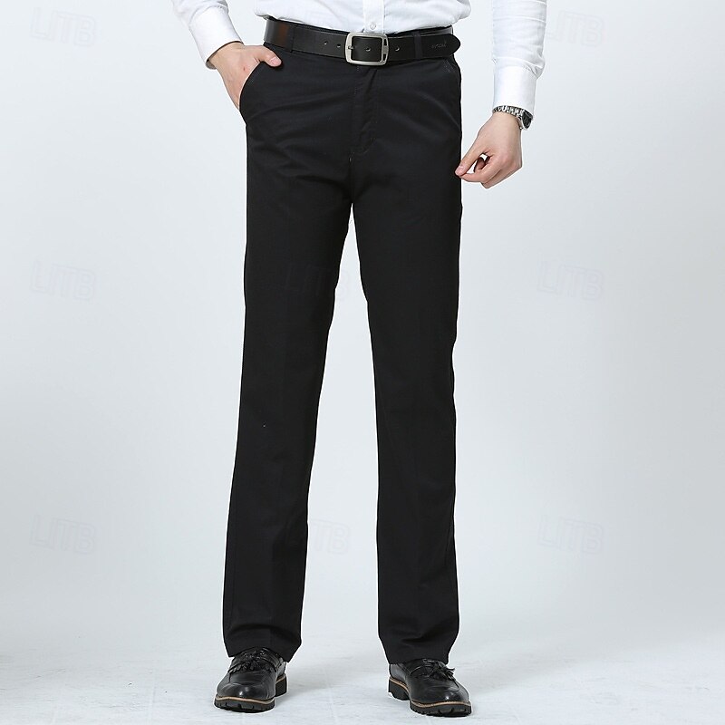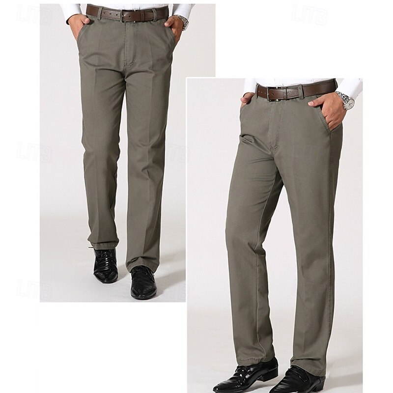 More information about Men's Dress Pants Trousers Chinos Buttons Pocket Plain Comfort Formal Party Work Fashion Classic Style Black Brown Micro-elastic
