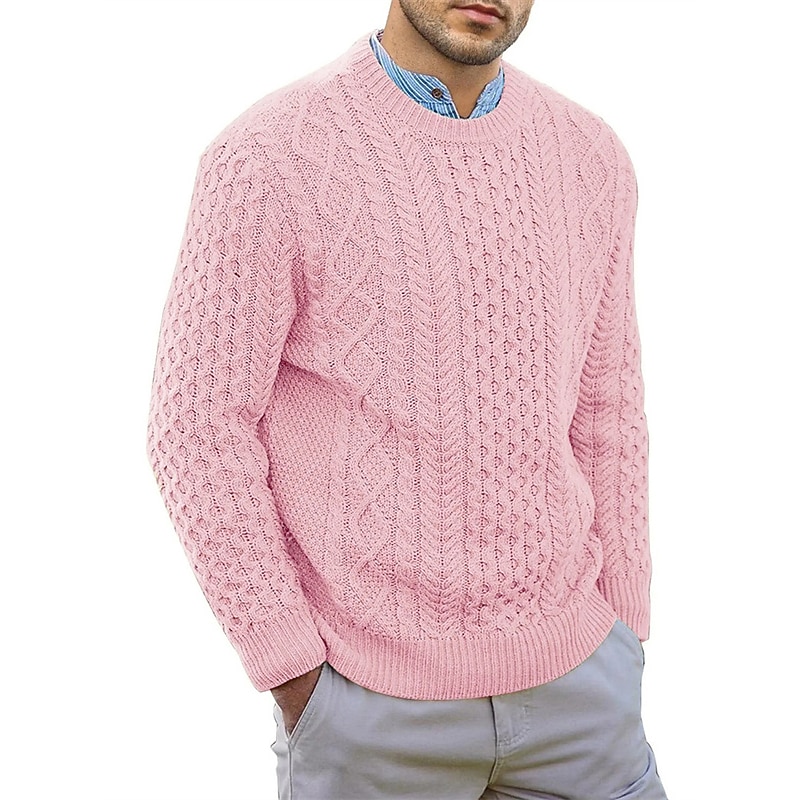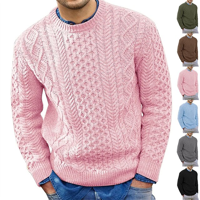 More information about Men's Sweater Pullover Sweater Jumper Dress Sweater Ribbed Cable Knit Cropped Knitted Crew Neck Going out Weekend Clothing Apparel Fall Winter Black Pink M L XL