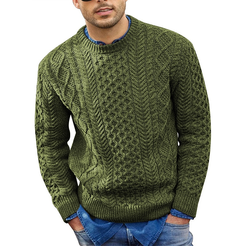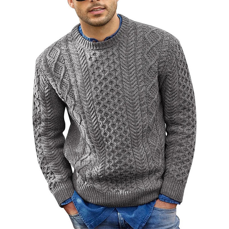 Men's Sweater Pullover Sweater Jumper Dress Sweater Ribbed Cable Knit Cropped Knitted Crew Neck Going out Weekend Clothing Apparel Fall Winter Black Pink M L XL 12