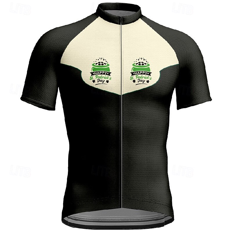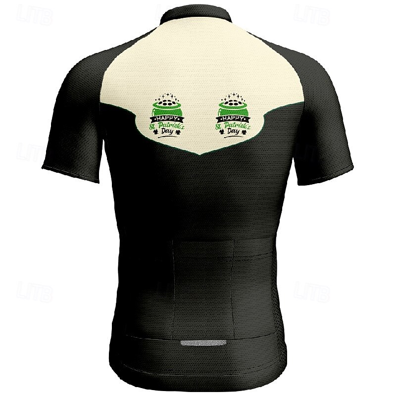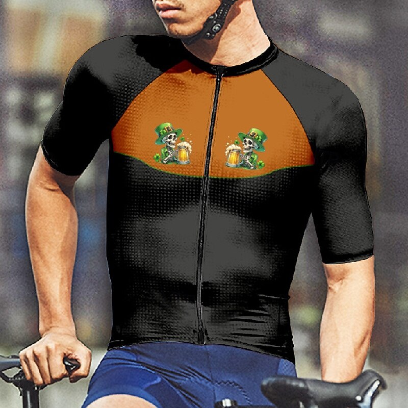 Men's St Patrick Jersey Cycling Jersey Graphic Short Sleeve Bike Tee Tshirt Jersey with 3 Rear Pockets Mountain Bike MTB Quick Dry Anatomic Design Wicking Breathable Sports Black White Orange 13