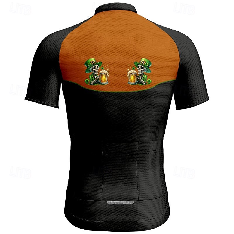 Men's St Patrick Jersey Cycling Jersey Graphic Short Sleeve Bike Tee Tshirt Jersey with 3 Rear Pockets Mountain Bike MTB Quick Dry Anatomic Design Wicking Breathable Sports Black White Orange 10
