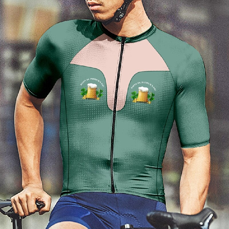 Men's St Patrick Jersey Cycling Jersey Graphic Short Sleeve Bike Tee Tshirt Jersey with 3 Rear Pockets Mountain Bike MTB Quick Dry Anatomic Design Wicking Breathable Sports Black White Orange 16