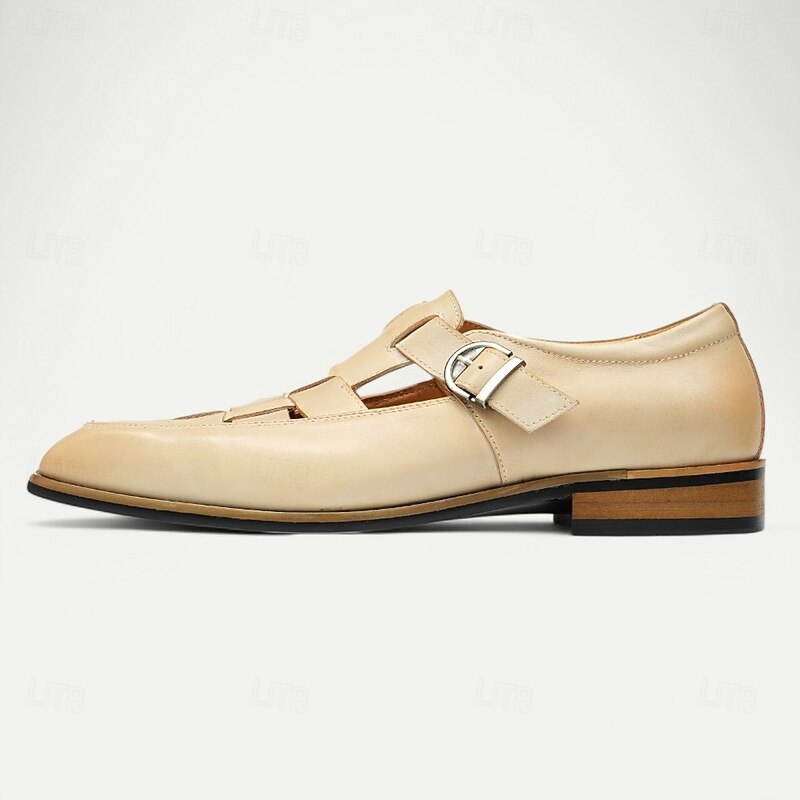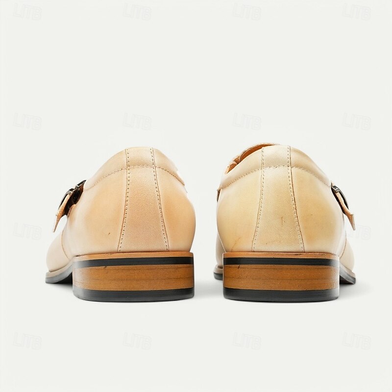 Men's Chic White Leather Monk Strap Shoes - Stylish Choice for Summer Weddings and Formal Events 24