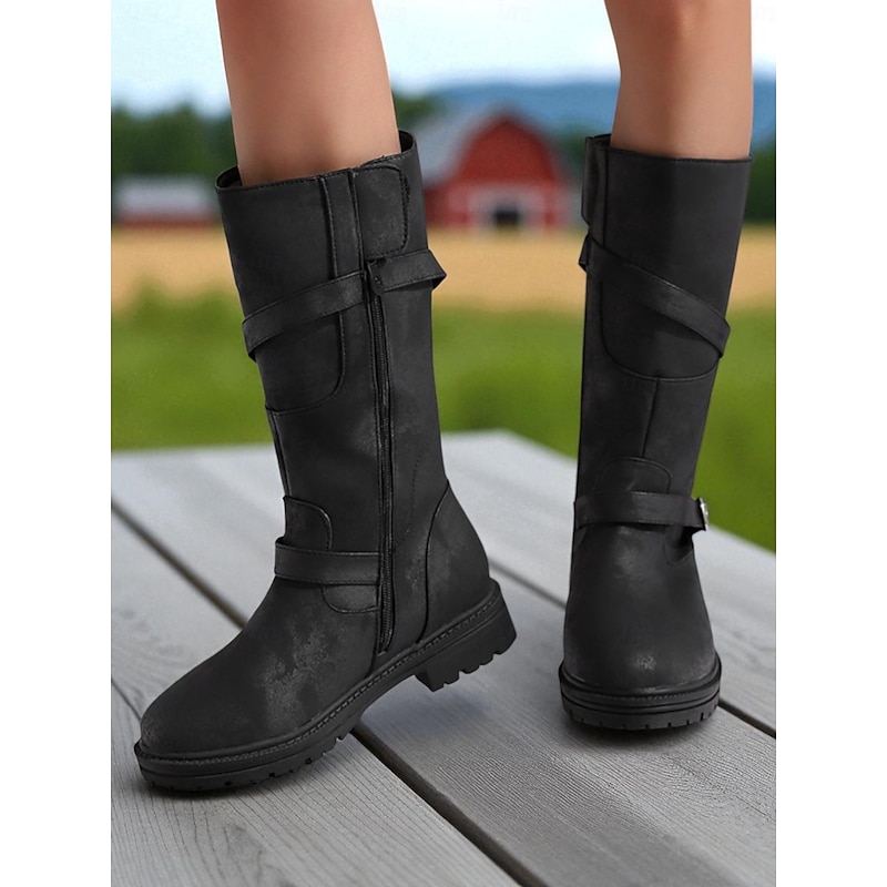 Highlights - Crafted from high-quality faux leather for a luxurious feel - Features a stylish buckle embellishment for added flair - Comfortable round toe shape for easy wear - Durable rubber outsole for long-lasting use - Stay ahead of the fashion curve with the upcoming trend of riding boots in 2025.