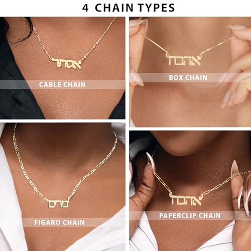 Material: Sterling SilverMetal type: No Metal TypeClasp type: LobsterChain type: CableCrafted in Israel: Experience the artistry of our jewelry, meticulously crafted in Israel, blending traditional techniques with modern design to create timeless pieces that reflect the rich heritage of the region.Meaningful Gifts: Show your love and appreciation with a personalized Hebrew name necklace, ideal for Bat Mitzvahs, birthdays, or special occasions, offering a timeless reminder of faith and tradition.Customization Options: Choose from a diverse range of font styles to personalize your Israel necklace or Hebrew name pendant, ensuring your jewelry reflects your distinctive identity and heritage.Superior Quality: Our necklaces are crafted with the finest materials and attention to detail, ensuring durability and long-lasting beauty.Timeless Elegance: Elevate your style with our chic chain designs and sophisticated finishes, perfect for any occasion.Personalized Touch: Make a statement with a custom name necklace, tailored to your individual style and personality. Perfect for everyday use. supreme materials and excellent craftsmanship ensure long-lasting durability.