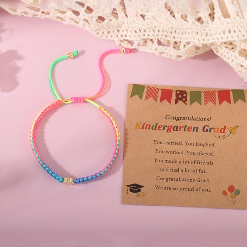 Material: Stainless SteelMetal type: BrassClasp type: Lobster ClawChain type: Braided ChainGem type: No gemstoneItem type name: Link Bracelets【2025 Kindergarten Graduation Bracelet】 When she wears this heart charm bracelet, this cute handmade bracelet will remind her that no matter where she is, she will always be connected to your heart. She will remember the good times she had with you. It would be a meaningful gift for her【Congratulation Graduate Gift】This cute braided bracelet comes with a meaningful message card and is packaged in a attractive jewelry bag. It is reading for as a gift to express your good wish, it will be a perfect souvenir【Material & Size】Made of braided rope and dainty stainless steel charm, no nickel and lead. It’s friendly to you skin and good enough to wear for a long time.Our bracelet features a sliding knot closure that adjusts from 5.2 to 9, making it the perfect fit for most wrists.This bracelet suitable for 3+ years old.【Meaningful Gift】This bracelet is the perfect graduation gift for your daughter, granddaughter, niece, goddaughter, friends. Give this beautiful handmade bracelet as a gift of congratulations on her graduation.【After-Sales Service】We will provide satisfied shopping experience. If you have any question or problem, please let me know. We will provide you with a reasonable solution. Perfect for everyday use. supreme materials and excellent craftsmanship ensure long-lasting durability.