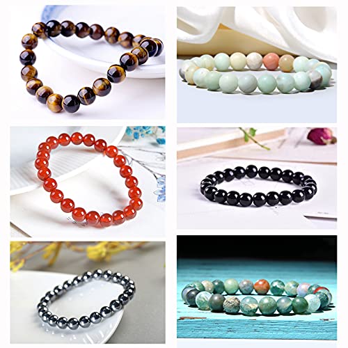 SONNYX 12 PCS 8mm Semi-Precious Gemstone Bracelet Set Crystal Stone Stretch Bracelets for Women Men Round Beaded Elastic Bracelets 6