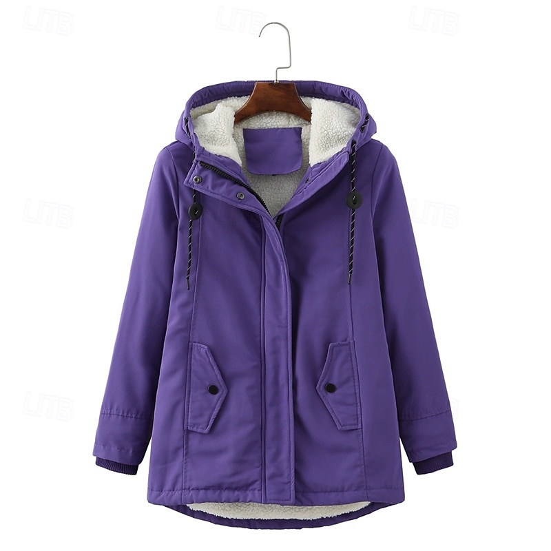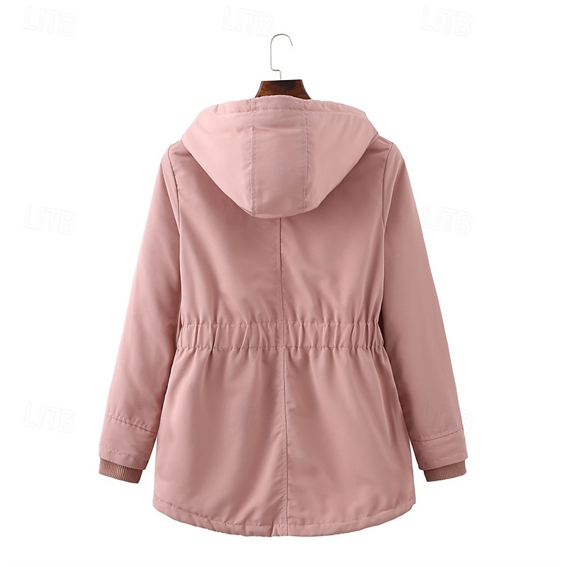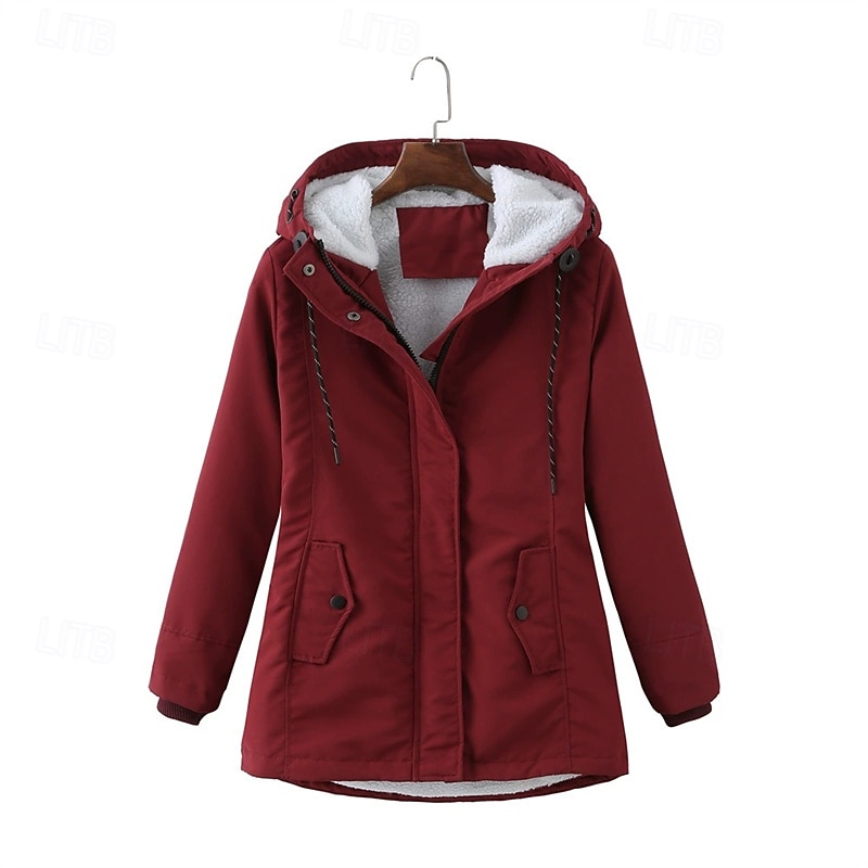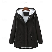More information about Women's Casual Jacket Warm Comfortable Zipper Pocket Fashion Outdoor Plain Going out Weekend Zipper Regular Hooded Regular Fit Long Sleeve Outerwear Black Pink Burgundy Fall Winter
