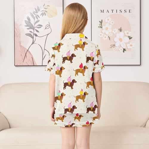 senya Dachshund Ice Cream Satin Summer Pajama Sets Silk Short Sleeve Button Down Sleepwear 5