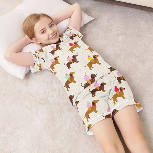 senya Dachshund Ice Cream Satin Summer Pajama Sets Silk Short Sleeve Button Down Sleepwear 1