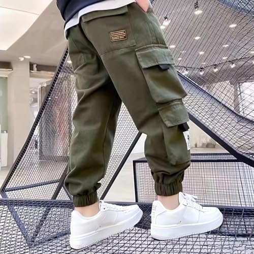 HOT ! Boys Cargo Pants Casual Baggy Pants Elastic Waist Trousers Cinch Bottom Hiking Pant School Joggers Pant with Pockets
