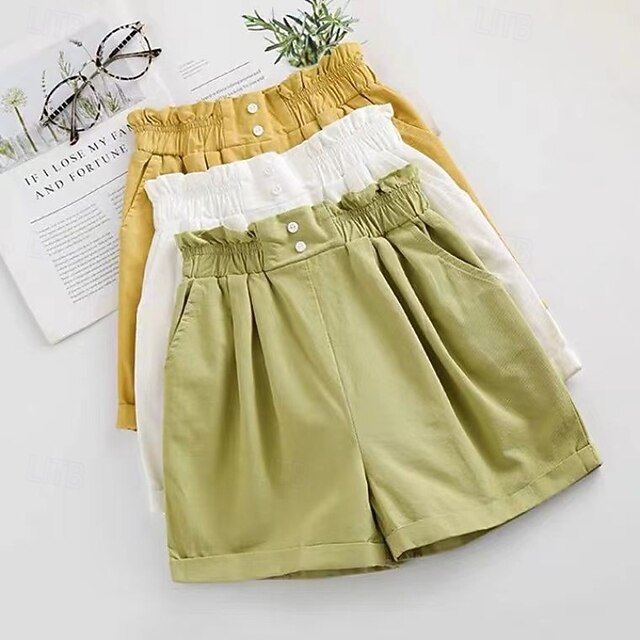 More information about Kids Girls' Shorts Solid Color Streetwear Pocket Outdoor 4-12 Years Summer White Yellow Green