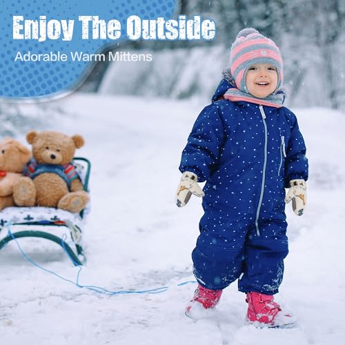 Toddler Mittens Dinosaur Snow Gloves for Toddler Baby girls Lined Fleece Gloves Baby Mittens Kids Winter Snow Gloves White 2-4 Years 4