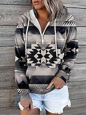 More information about Women's Pullover Hoodie Sweatshirt Geometric Color Block Vintage Ethnic Casual Long Sleeve Hooded Regular Tops Street Dailywear Black Blue Khaki Beige Fall Winter